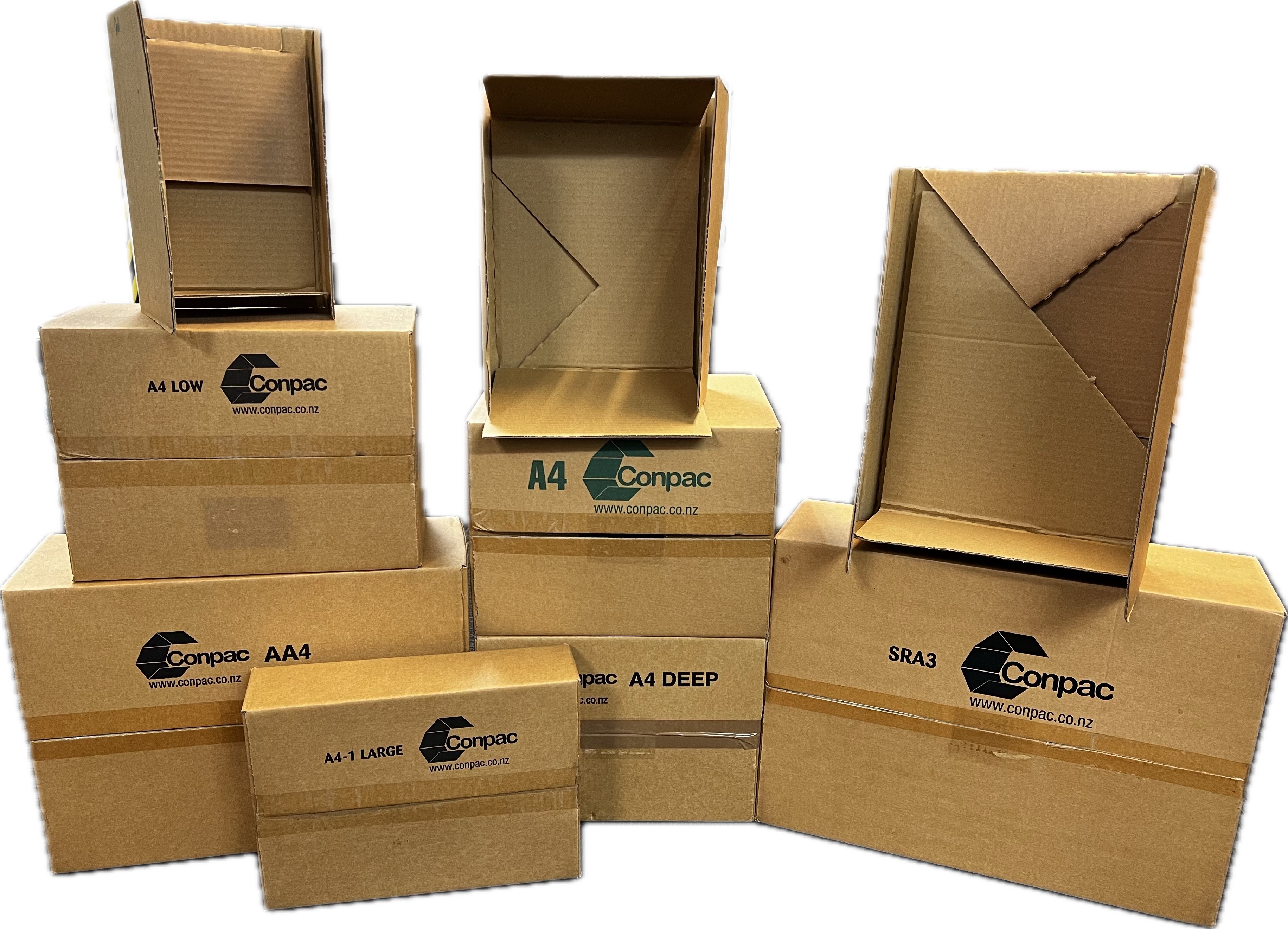 Description : Plain A4 Low Box with Conpac Logo Printed on the Bottom Flap