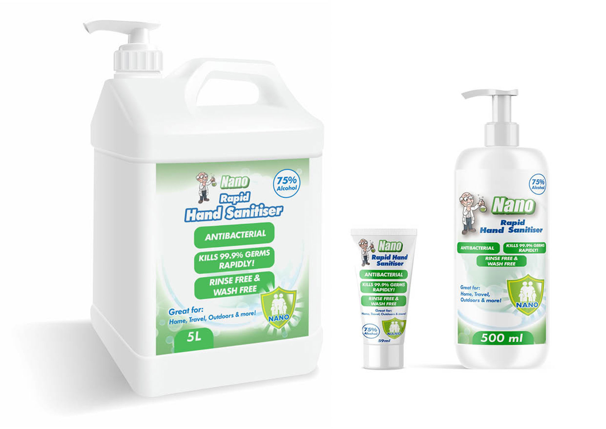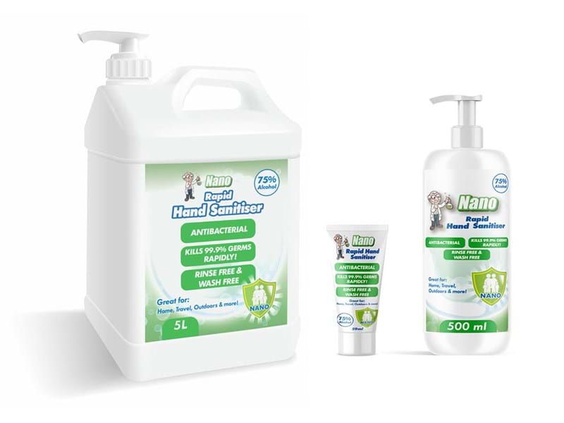 Nano hand sanitiser is anti-bacterial, kills 99.9% of germs rapidly and is rinse and wash-free
