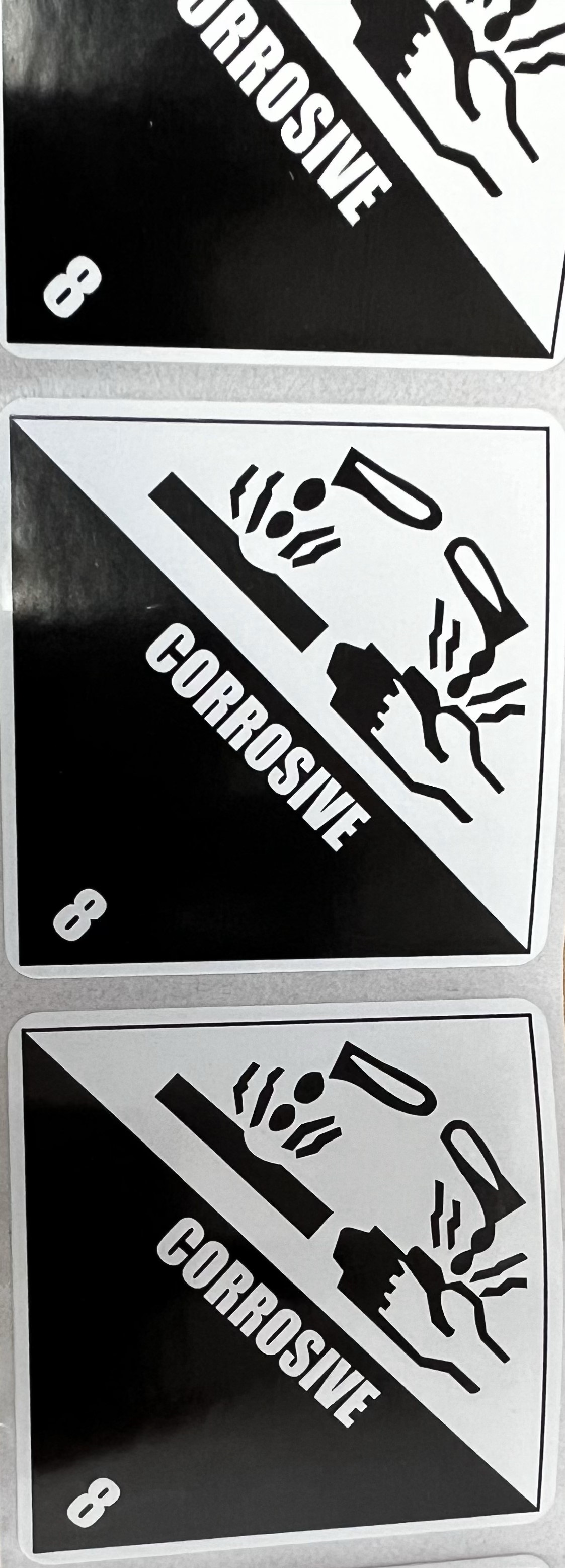 Label DG Paper - (Corrosive 8) - 50mm x 50mm